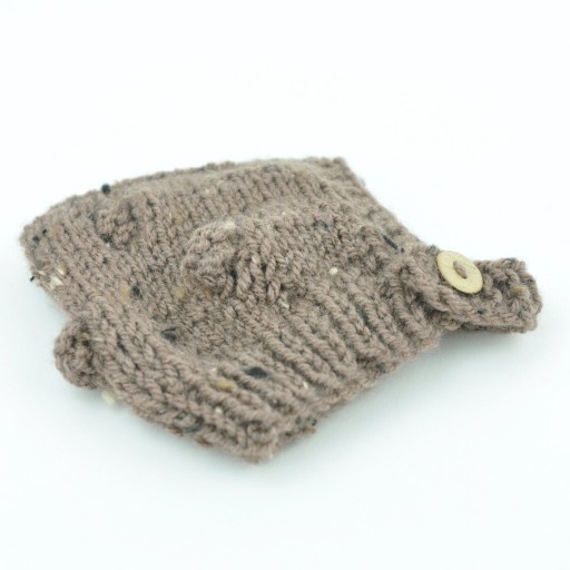 Czapka z włóczki dla lalki Miniland 38cm karmel