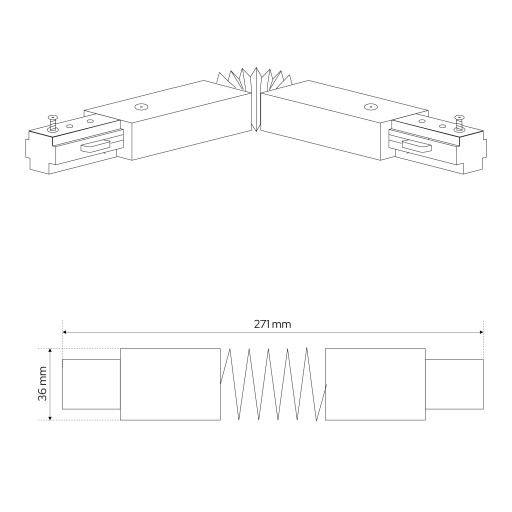 Łącznik elastyczny przeznaczony do systemu szynowego 3 -przewodowego 1-fazowego. To niezbędna część podczas konstruowania systemów oświetlenia szynowego, umożliwia przedłużenie listwy szynowej o kolejne elementy. Łącznik elastyczny typu A należy do produktów z gamy Łączniki i Akcesoria do systemu szynowego MEVA PRO.