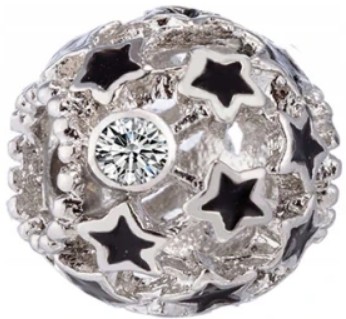 Modułowa ażurowa zawieszka z emaliowanymi gwiazdkami wysadzana cyrkoniami.