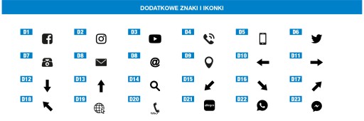 - Możliwość wyboru jednej z 70 czcionek i 23 ikonek