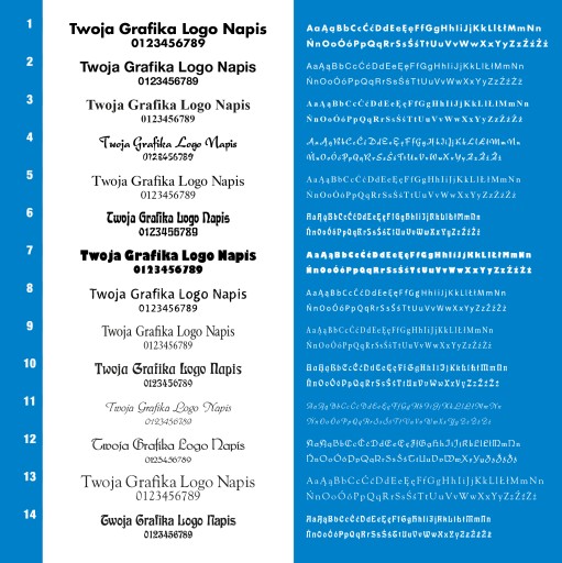 - Wybierz czcionkę i podaj treść naklejki lub prześlij logo swojej firmy.