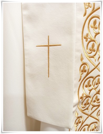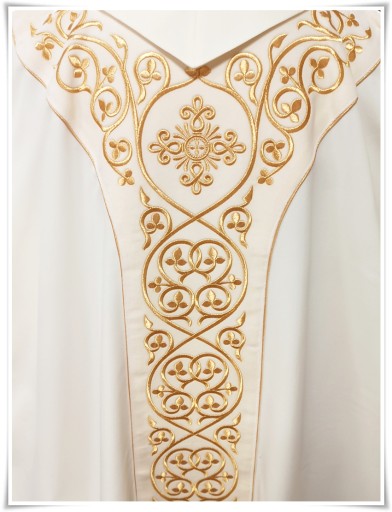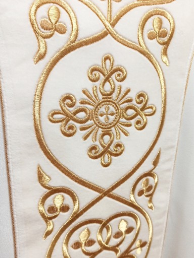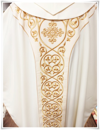 - biel (kremowe i ecru) – są przywdziewane przez kapłana na msze okresu wielkanocnego i Narodzenia Pańskiego, we wszystkie święta Jezusa Chrystusa – z wyjątkiem tych dotyczących Jego męki – oraz w dni świętych, którzy nie byli męczennikami. Białe są także ornaty Maryjne;