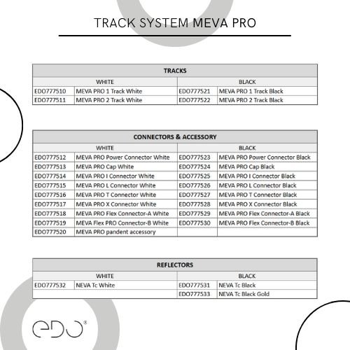 Zaślepka do szynoprzewodów oświetleniowych MEVA PRO marki EDO występuje w kolorze białym i czarnym, dzięki czemu można dopasować ją do koloru szyny, którą wybrano. Umożliwia klientowi estetyczne i bezpieczniejsze wykończenie instalacji oświetleniowej. Zaślepka MEVA PRO Cap wykonana z wysokiej jakości materiału PC. Zaślepka należy do produktów z gamy Łączniki i Akcesoria do systemu szynowego.