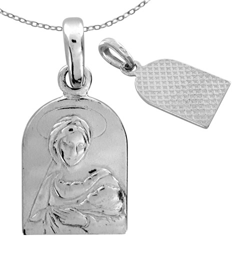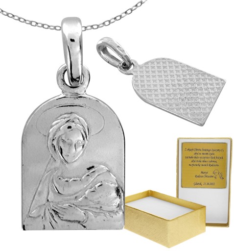 Na medaliku znajduje się postać Matki Boskiej z dzieciątkiem.