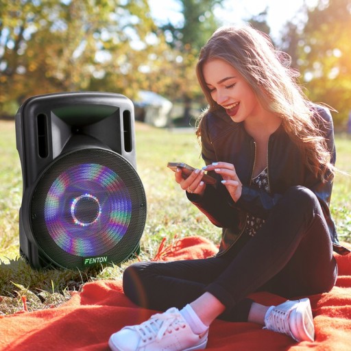 Przenośna kolumna Fenton FT15LED o mocy 800W, pozwala urządzić wspaniałe przyjęcie. Dzięki wbudowanemu akumulatorowi, kolumny FT15LED można używać w dowolnym miejscu, bez konieczności szukania gniazdka elektrycznego. FT15LED wyposażony jest w 15-calowy głośnik niskotonowy, oraz diody LED z funkcją włącz/ wyłącz. Efekty świetlne, oraz odpowiednia jakość dźwięku w kolumnie Fenton zapewnią wiele godzin doskonałej zabawy. Dodatkowym atutem kolumny jest dołączony do zestawu bezprzewodowy mikrofon z efektem echa, który idealnie sprawdzi się na imprezy typu Karaoke, wieczór panieński czy kawalerski. FT15LED ma również wejście instrumentalne, które daje możliwość podłączenia na przykład gitary.