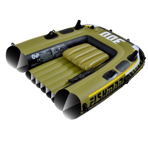 Wędkarski Ponton Dmuchany Firmy JILONG FISHMAN 200 z dodatkowym wyposażeniem, posiada 2-komorową konstrukcję: komorę zewnętrzną i komorę bezpieczeństwa, wyposażona w dmuchaną podłogę.
