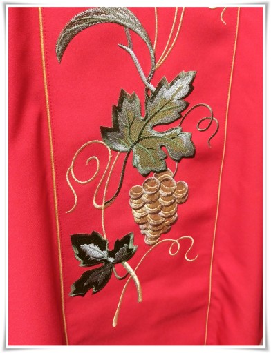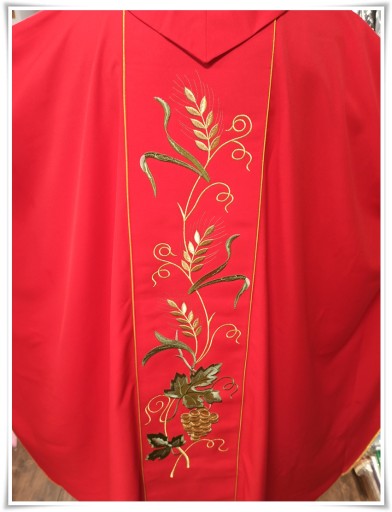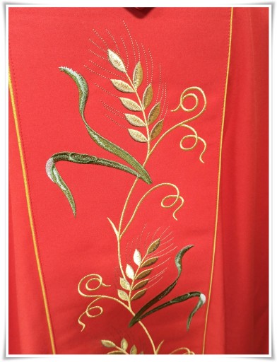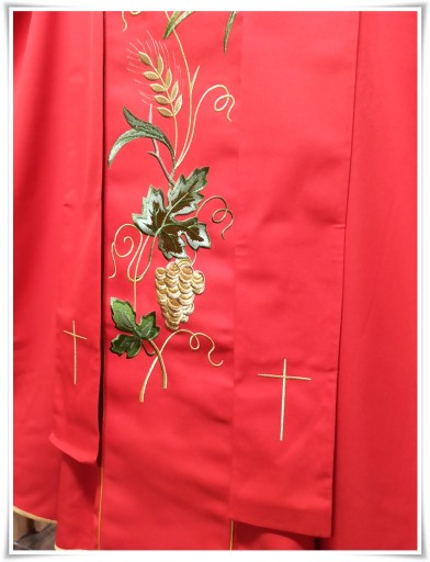 - czerwień – w niedzielę Palmową, Wielki Piątek i podczas mszy nawiązujących do Ducha Świętego;