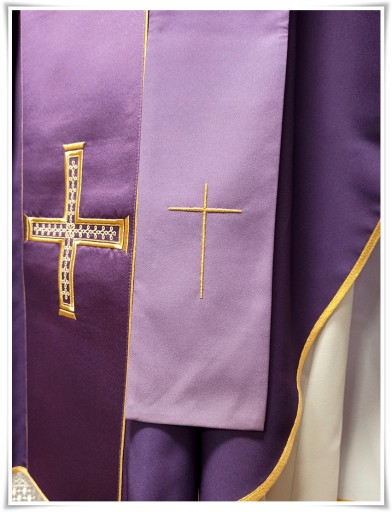 - fiolet – to kolor pokuty i oczekiwania. Ornaty fioletowe kapłan zakłada więc w okresie adwentu i wielkiego postu, ale także na msze za zmarłych;