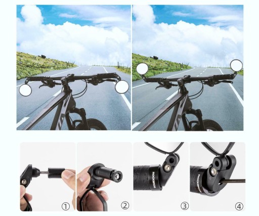 Rowerowe lusterka wsteczne można zainstalować po lewej i prawej stronie płaskiej kierownicy. Aby zainstalować, użyj klucza imbusowego (w zestawie), a następnie dokręć, aby zapewnić bezpieczną blokadę.