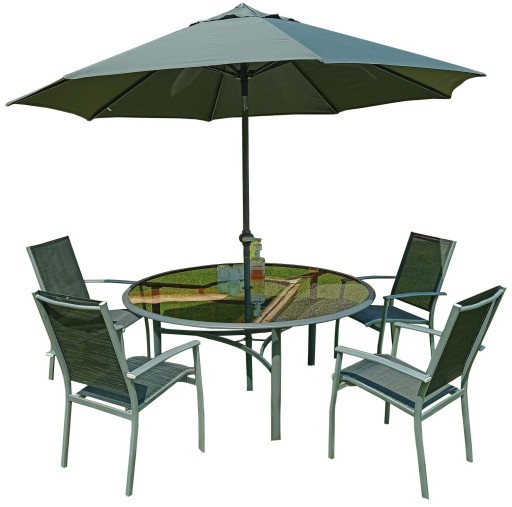 ZESTAW OGRODOWY STÓŁ Z KRZESŁAMI I PARASOLEM wykonane w ALUMINIUM