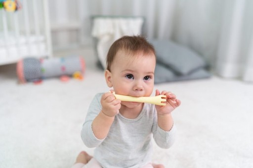 Wykonana z bezpiecznego silikonu Żyrafa posiada na swej długiej szyi wypustki, które masują dziąsła ząbkującego dziecka i zapobiegają wyślizgiwaniu się łyżeczki z małej rączki.