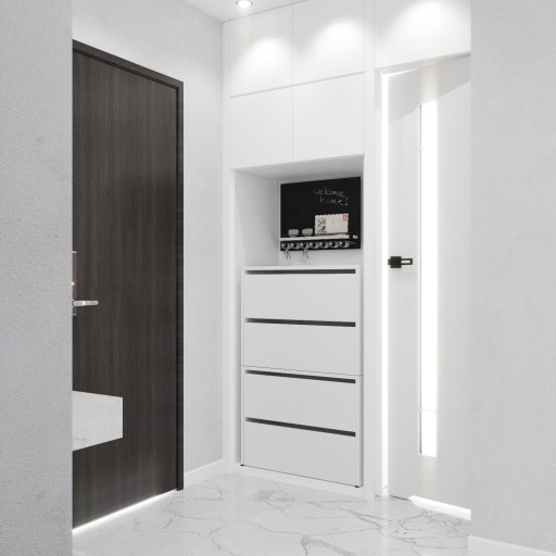 - Estetyczny wygląd: Szafka o nowoczesnym designie i Białym kolorze nie tylko praktycznie przechowuje buty, ale także dodaje elegancji i charakteru Twojej przestrzeni wejściowej.