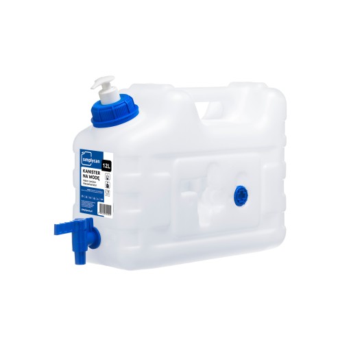 SOLIDNA KONSTRUKCJA, WYGODNY UCHWYT I SZEROKI WLEW Wzmocnione krawędzie ścianek kanistra gwarantują wysoką odporność na uderzenia. Wygodny uchwyt zapewnia łatwość użytkowania i możliwość sztaplowania, a szeroki wlew ułatwia napełnianie płynem. ODKRĘCANY KRAN I ZAŚLEPKA Kanistry do wody SimplyCan wyposażone są w wykręcany kran z uszczelką. Zastosowanie ergonomicznej zaślepki chroni kran przed uszkodzeniem. Wygodne odkręcanie zapewnia pasująca do gniazda zaślepki dźwignia kranu. WNĘKA NA KRAN I ZAŚLEPKĘ W ściance kanistra zaprojektowaliśmy funkcjonalne wnęki do mocowania kranu i zaślepki, zapobiegające ich zagubieniu. To praktyczne rozwiązanie gwarantuje też optymalne wykorzystanie przestrzeni.ATEST KONTAKTU Z ŻYWNOŚCIĄ Nasze produkty wykonane są z atestowanych materiałów i posiadają wymagane badania oraz certyfikaty do kontaktu z żywnością. Wymiary: 28 cm (wys.) x 16 cm (szer.) x 38 cm (gł.) Pojemność: 12L Materiał kanistra: HDPE (Polietylen wysokiej gęstości) Materiał kranu i nakrętek: PP (Polipropylen) Nakrętka: DIN 61 Kolor kanistra: Bezbarwny Kolor akcesoriów: Niebieski Średnica wlewu: 48 mm Średnica otworu spustowego: 1/2 " Masa: 620 g