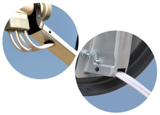 - System zarządzania przewodami dzięki któremu ukryjesz przewody w wysięgniku zabezpieczając je przed warunkami atmosferycznymi