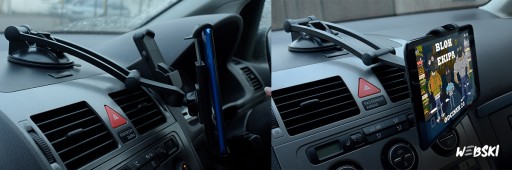 Uchwyt pasuje do telefonów od 4,5 cali, tabletów od 7 cali aż do 11cali oraz nawigacji.