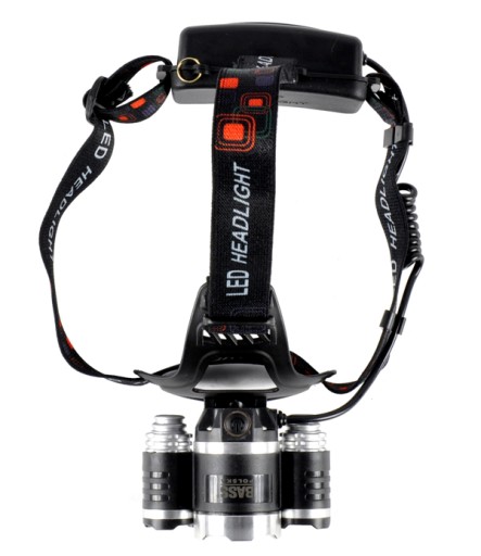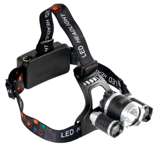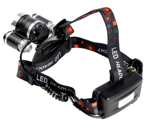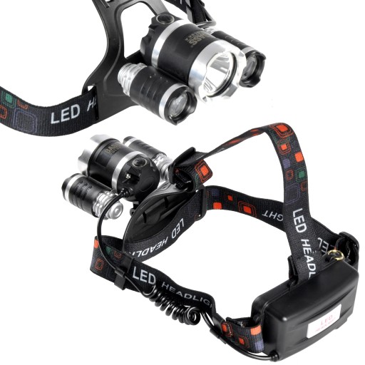 Latarka czołowa z mocnym światłem ledowym pozwalająca bez użycia rąk oświetlić dany przedmiot lub teren.