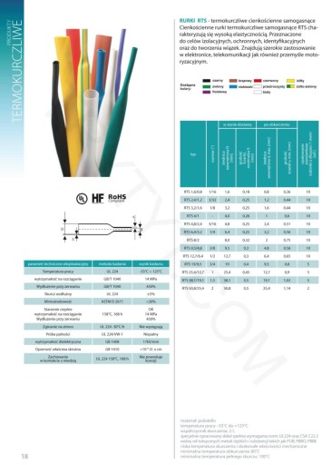 Cienkościenne rurki termokurczliwe samogasnące RTS charakteryzują się wysoką elastycznością. Przeznaczone