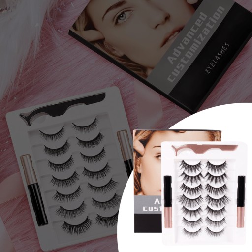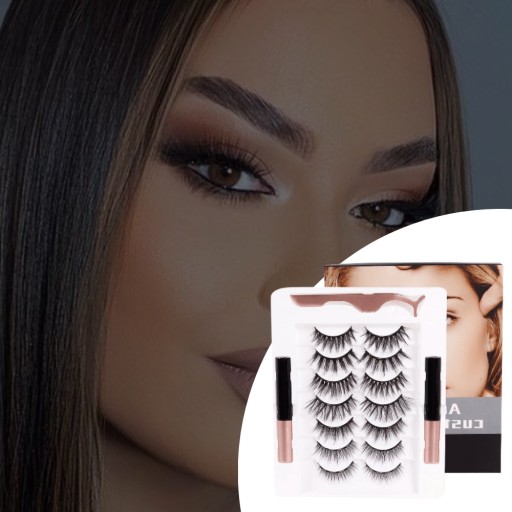 RZĘSY MAGNETYCZNE 7X DŁUGIE + PĘSETA + 2 x EYELINER