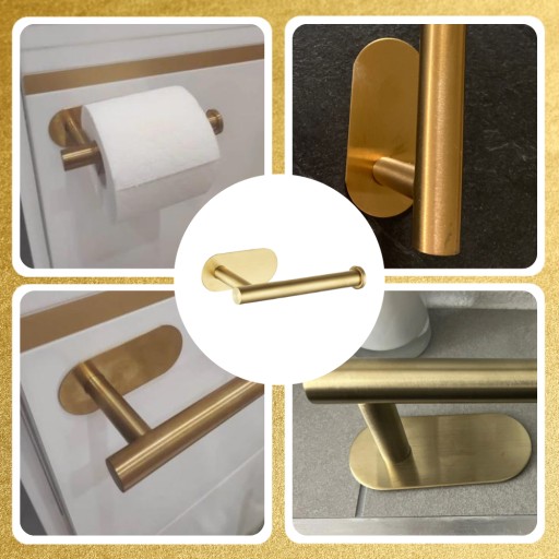 Złoty kolor dodaje elegancji i sprawia, że uchwyt pasuje do różnych stylów aranżacji łazienki. Samoprzylepny montaż uchwytu jest szybki i prosty, a jego stabilna konstrukcja zapewnia bezpieczne i wygodne przechowywanie papieru toaletowego.