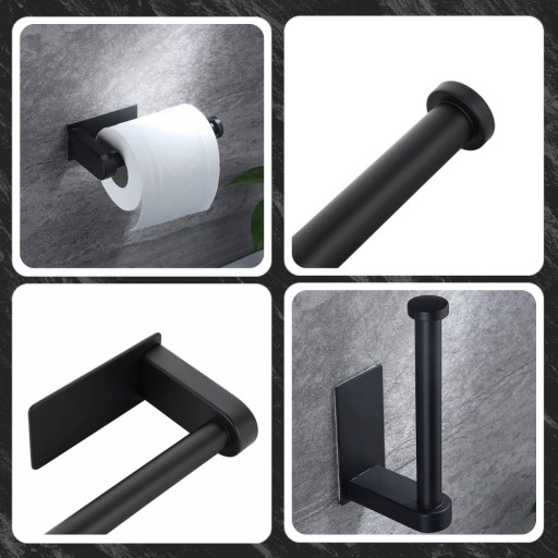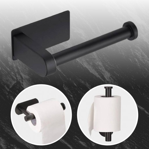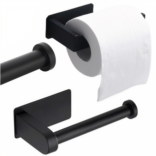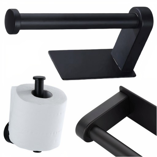 Uchwyt na papier toaletowy samoprzylepny Loft w kolorze czarnym to funkcjonalny i stylowy dodatek do każdej łazienki.