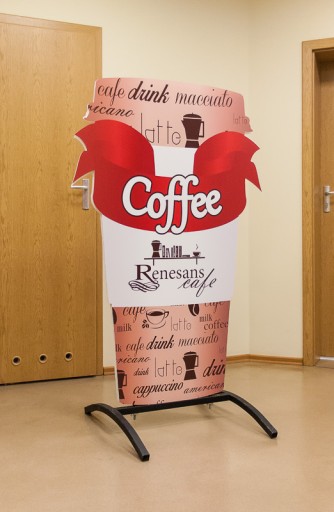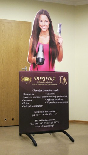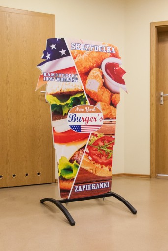 Stand dwustronny wycinany po obrysie przeznaczony do ekspozycji zewnętrznej.