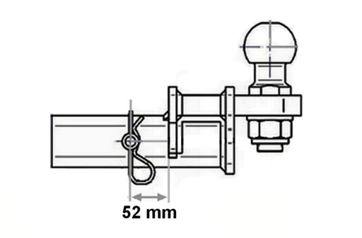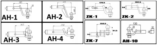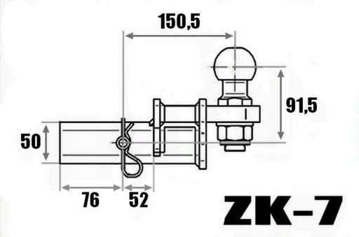wysunięcie poziom (odległość od środka otworu na przetyczkę do środka kuli haka) - 150,5mm