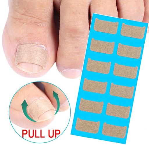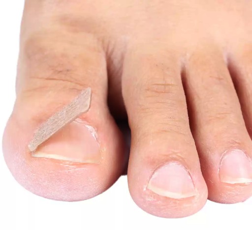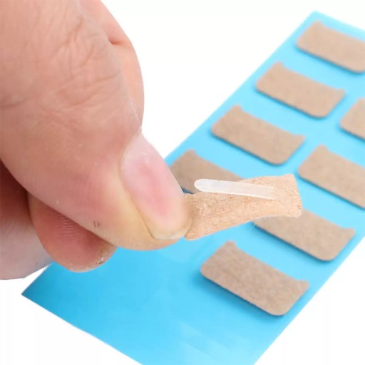 Bezinwazyjne łatki przeznaczone dla osób z problem wrastających paznokci, który można stosować samemu w domu.