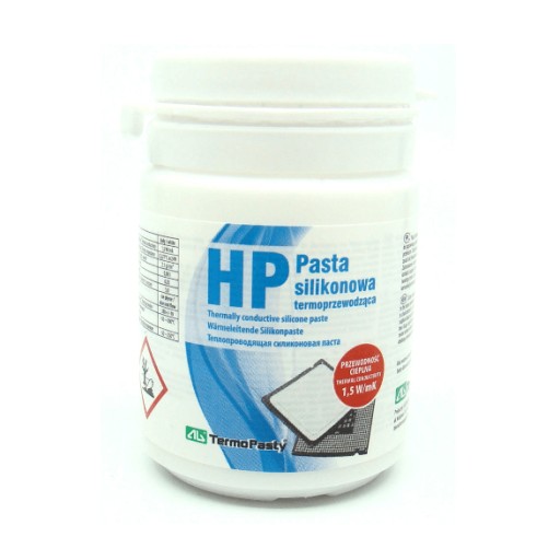 Pasta termoprzewodząca HP 100g - firmy AG TermoPasty do zastosowania w elektronice jako przewodnik ciepła pomiędzy elektroniką a radiatorem. Wykazuje dobre właściwości przewodzenia ciepła oraz odporność na przepięcia, warunki atmosferyczne, utlenianie i wodne roztwory kwasów i zasad. Temperatura pracy wynosi od -50°C do 250°C. Odpowiedni do zastosowania w AGD, podzespołach elektronicznych, przetwornikach mocy, napędach pamięci masowej, czujnikach temperatury i wielu innych.