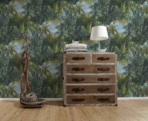 Tapeta idealnie się komponuje z drewnopodobnymi dodatkami .