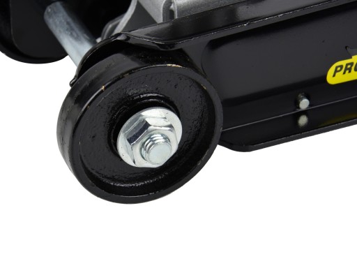 Podnośnik hydrauliczny typu żaba został wyposażony w masywne, metalowe kółka przednie oraz skrętne i łożyskowane kółka tylne, które zapewniają stabilną pracę i wysoką mobilność.