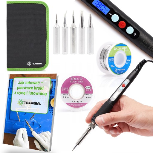 Precyzyjna lutownica 60W Techrebal ”Black Samurai” TBS60W z wyświetlaczem i zestawem lutowniczym w etui