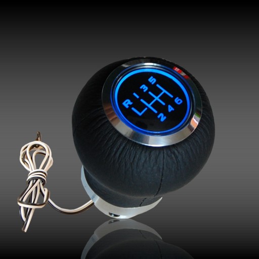 Podświetlana gałka biegów obszycie skóra naturalna PERFOROWANA (dziurkowana ) kolor czany , dodatki polerowanego aluminium