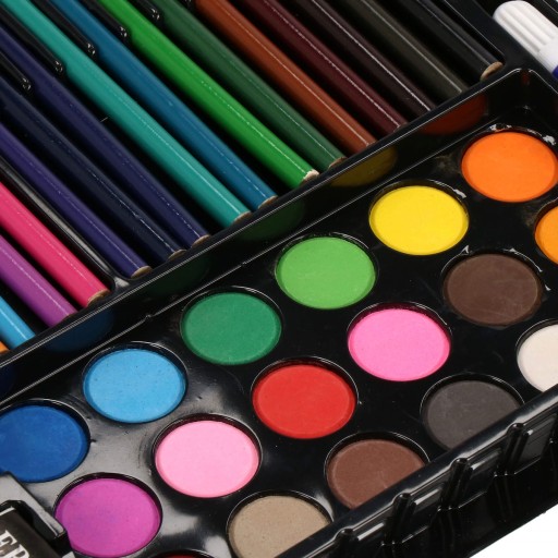 Zapoznając się w wyposażeniem zestawu artystycznego warto zauważyć, że bogata paleta barw i akcesoriów sprawdzi się również dla dorosłych podczas szkicowania czy kolorowania.