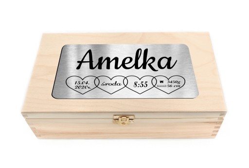 Drewniana Skrzynka na pamiątki dziecka Narodziny Pamiątka Narodzin grawer