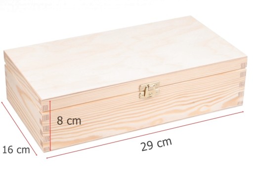 Szkatułka wykonana jest z naturalnego drewna sosnowego.
