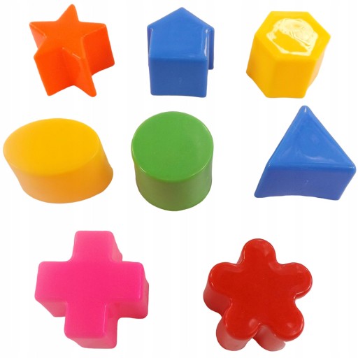 -Sorter z klockami na dopasowywanie kształtów, dzięki czemu dziecko rozwija koordynację ruchową, uczy się kolorów i nazw figur
