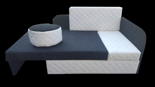 Tapczanik posiada pojemnik na pościel. Górna część tapczaniku jest wysuwana.