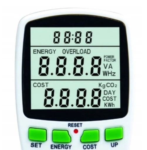 Wystarczy ustawić cenę 1 kWh a miernik na bieżąca zliczy koszta. Urządzenie wyposażony w alarm przeciążeniowy po przekroczeniu mocy maksymalnej.