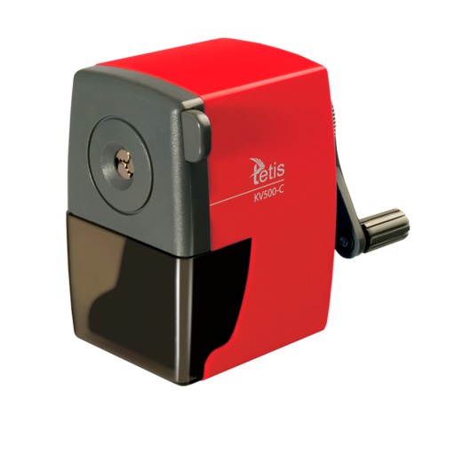 Poręczna w użyciu temperówka na korbkę mocowana do blatu za pomocą metalowego uchwytu. Bardzo dobrze ostrzy ołówki i kredki o średnicy o 8 mm. Wyposażona w wymienne, cylindryczne ostrze; pojemny, wysuwany pojemnik na ścinki oraz antypoślizgowy spód.