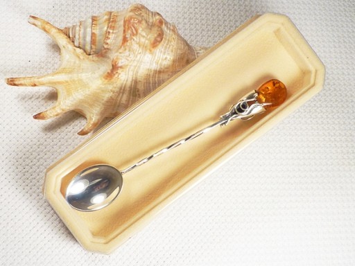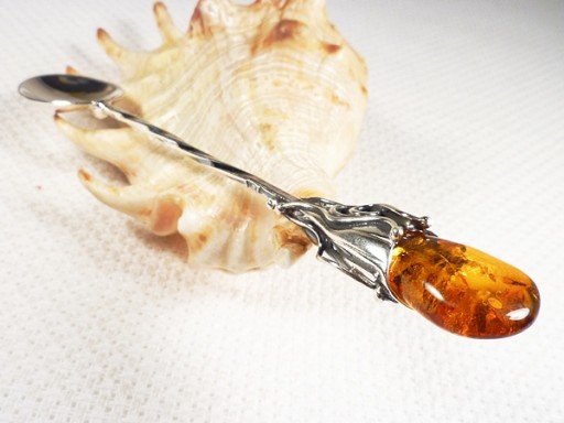 922/7 Łyżeczka Srebro z Bursztynem -HAND MADE-
