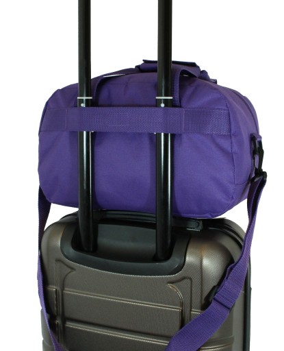 Po trzecie - w sytuacji gdy mamy większą ilość bagażów możemy w łatwy sposób przetransportować tę torbę, dzięki specjalnemu pasowi w tylnej części torby - służy on do mocowania torby do rączki walizki. Takie rozwiązanie pozwala na wygodne przemieszczanie się z bagażami.