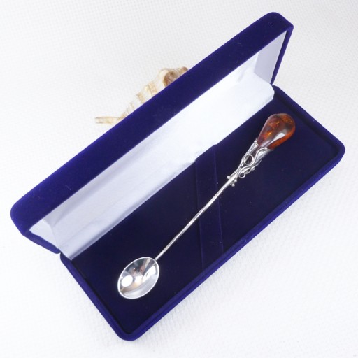 Srebrna łyżeczka z naturalnym bursztynem bałtyckim – kunszt i elegancja w wyjątkowym wydaniu