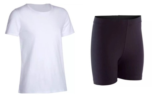 Koszulka + legginsy/spodenki z miękkiej komfortowej bawełny.