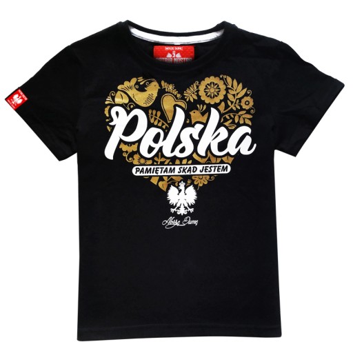 Koszulka dziecięca Polska - pamiętam skąd jestem - Czarna | Rozmiar: 9-10 lat