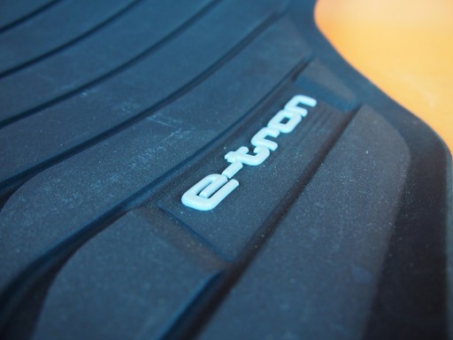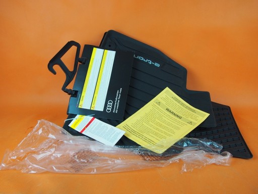 Oryginalny, fabrycznie nowy zestaw 2 przednich dywaników gumowych AUDI A3 8V z emblematami "E-Tron"