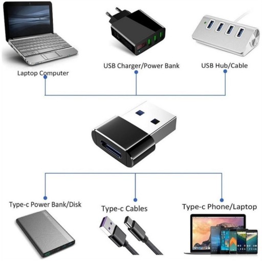 - Złącze: USB 2.0 męski (F) - USB 3.1 Typ C żeński (M)