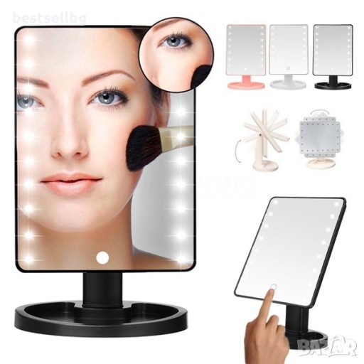 ЗЕРКАЛО ДЛЯ МАКИЯЖА СО СВЕТОДИОДНОЙ ПОДСВЕТКОЙ, ПОДСТАВОЧНОЕ, ПОВОРОТНОЕ, 16