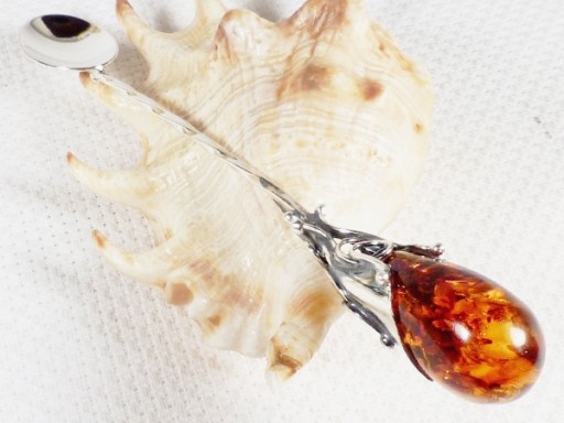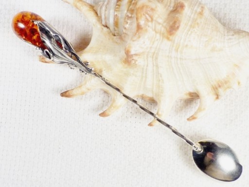 Łyżeczka srebrna z bursztynem, handmade 911-4