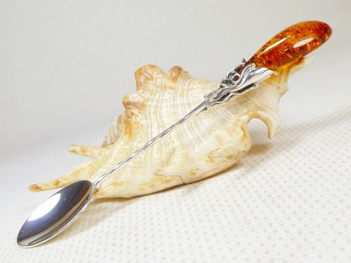 Łyżeczka srebrna z bursztynem, handmade 914-7