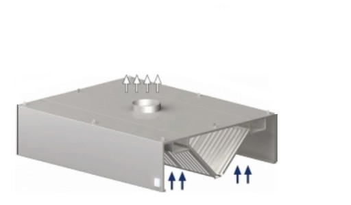 Nowy Okap Gastronomiczny centralny prostokątny z filtrami i króćcem wylotowym fi 150/200